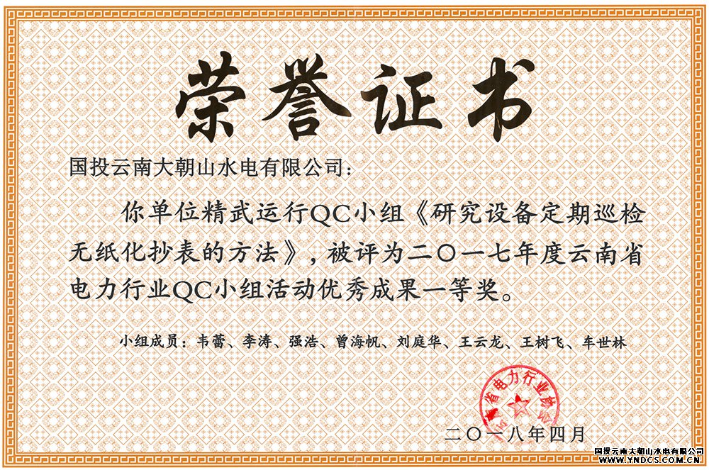 日期: 2018-08-20 2018年4月,在云南省水电行业协会开展的2017年度QC小组活动评比中,公司荣获“2017年度云南省水电行业QC小组活动优秀企业”荣誉称号,此外,精武运行QC小组《研究设备定期巡检无纸化抄表的方法》获得优秀成果一等奖,龙舟运行QC小组的《bat365在线平台电厂常用运行数据自动生成系统开发》、蜂彩蜜家QC小组的《减小水轮光能机组同期并网时的有功冲击》、机械QC小组的《提高320T门机顶轨器动作的可靠性》、水情监测QC小组的《提高水情测报系统通信畅通率》分别获得优秀成果二、三等奖,孙开同志被评为“质量管理小组活动优秀推进者”。这些荣誉称号,充分肯定公司近几年来在QC小组活动等创新工作中的努力和取得的成绩。